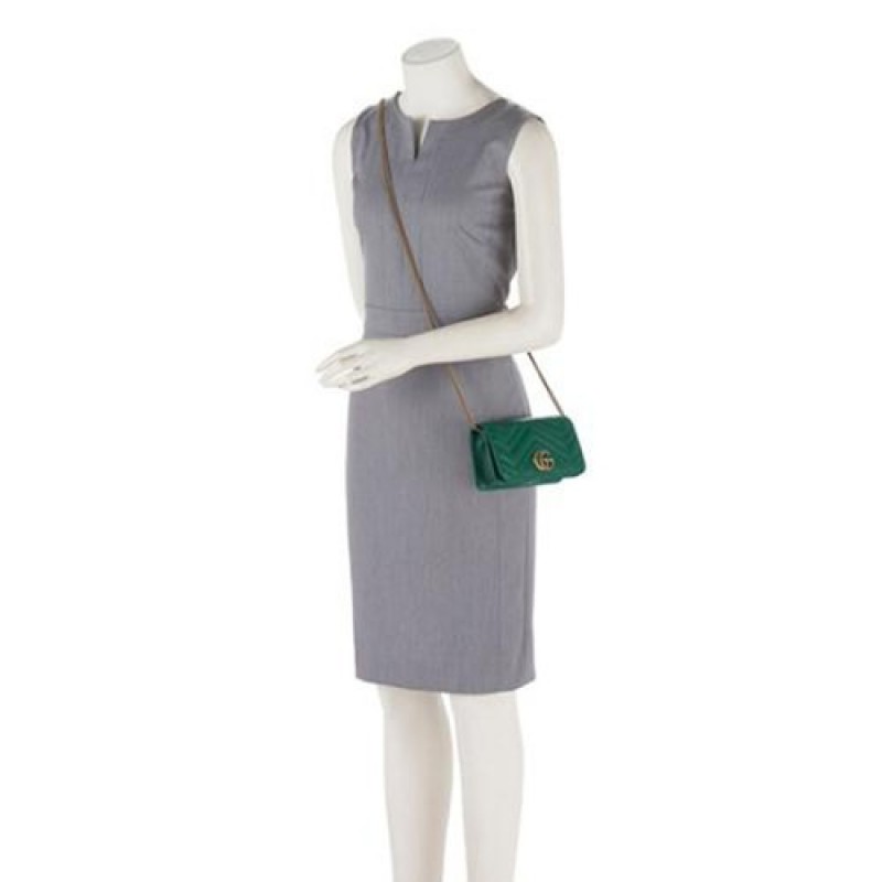 Gucci Marmont Mini Chain Wallet Shoulder Bag, Green Color