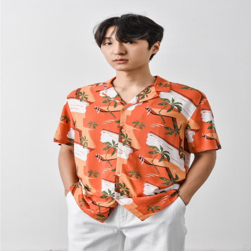 SHORT-SLEEVE VISCOSE PRINTED REGULAR-FIT SHIRT - 10S21SHS015