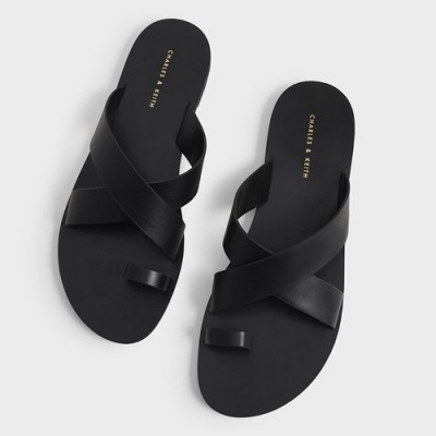 Charles & Keith Toe-Loop Crossover Flats Toe Flip Flops CK1-70060577, Black Color $48 |