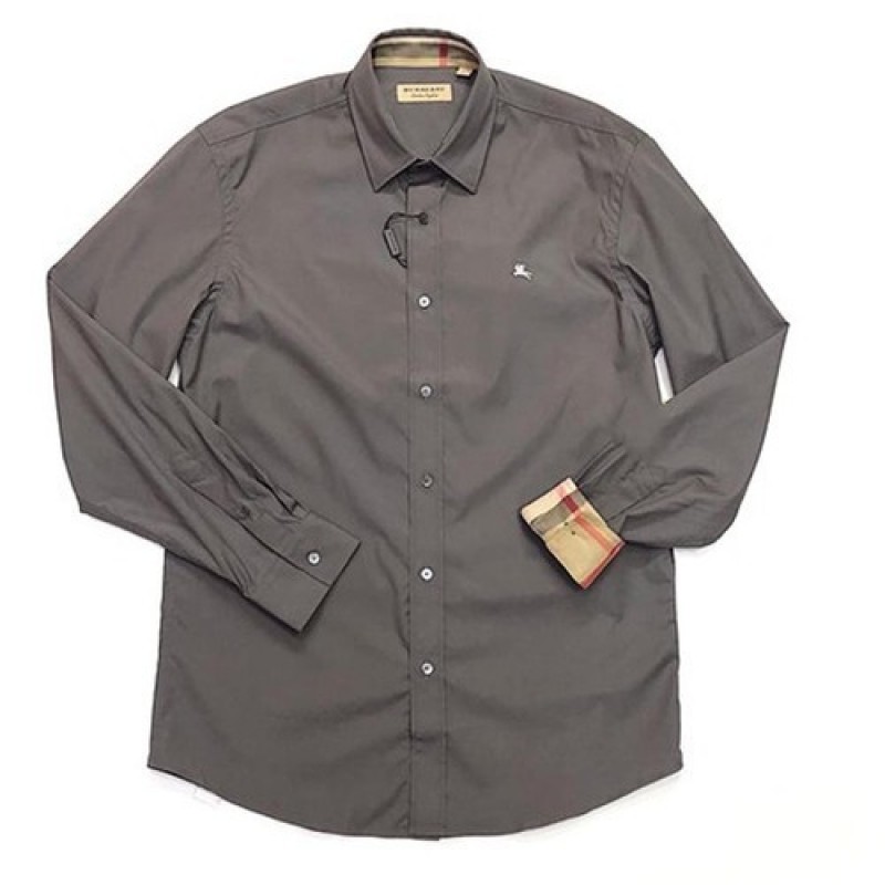 Burberry Stone Grey Check Collar Grey Shirt